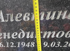 Клиент заказал симметричное уже установленному памятнику надгробье, поэтому для начала мы перемеряем уже существующие надпись, портрет, эпитафию и гравировки.