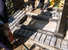 Ремонт покосившего памятника и оформление цветника брусчаткой